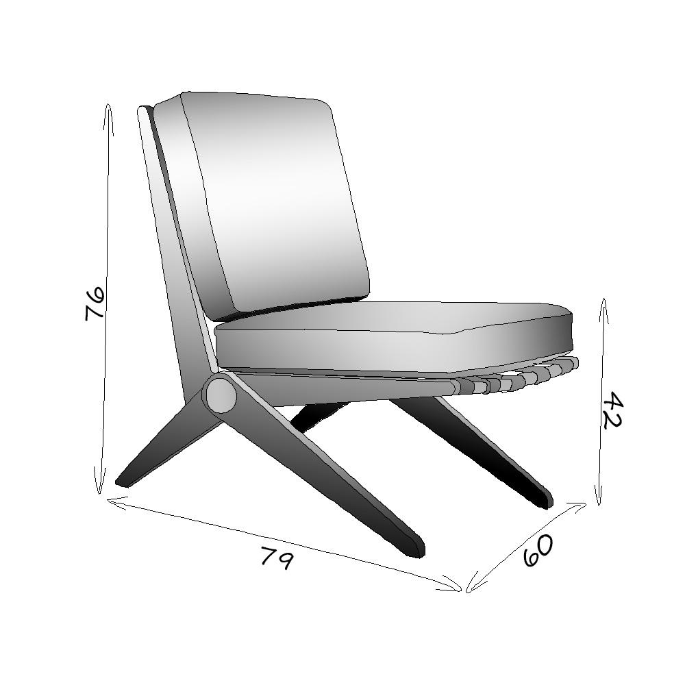 Sitial Marsella creado por pierre jeanneret, arquitecto y diseñador suizo primo y estrecho colaborador de Le Corbusier, diseña esta silla en 1948 llamada Scissor chair, inspirándose en un compás de dibujo, la fabrica en madera y cuero.