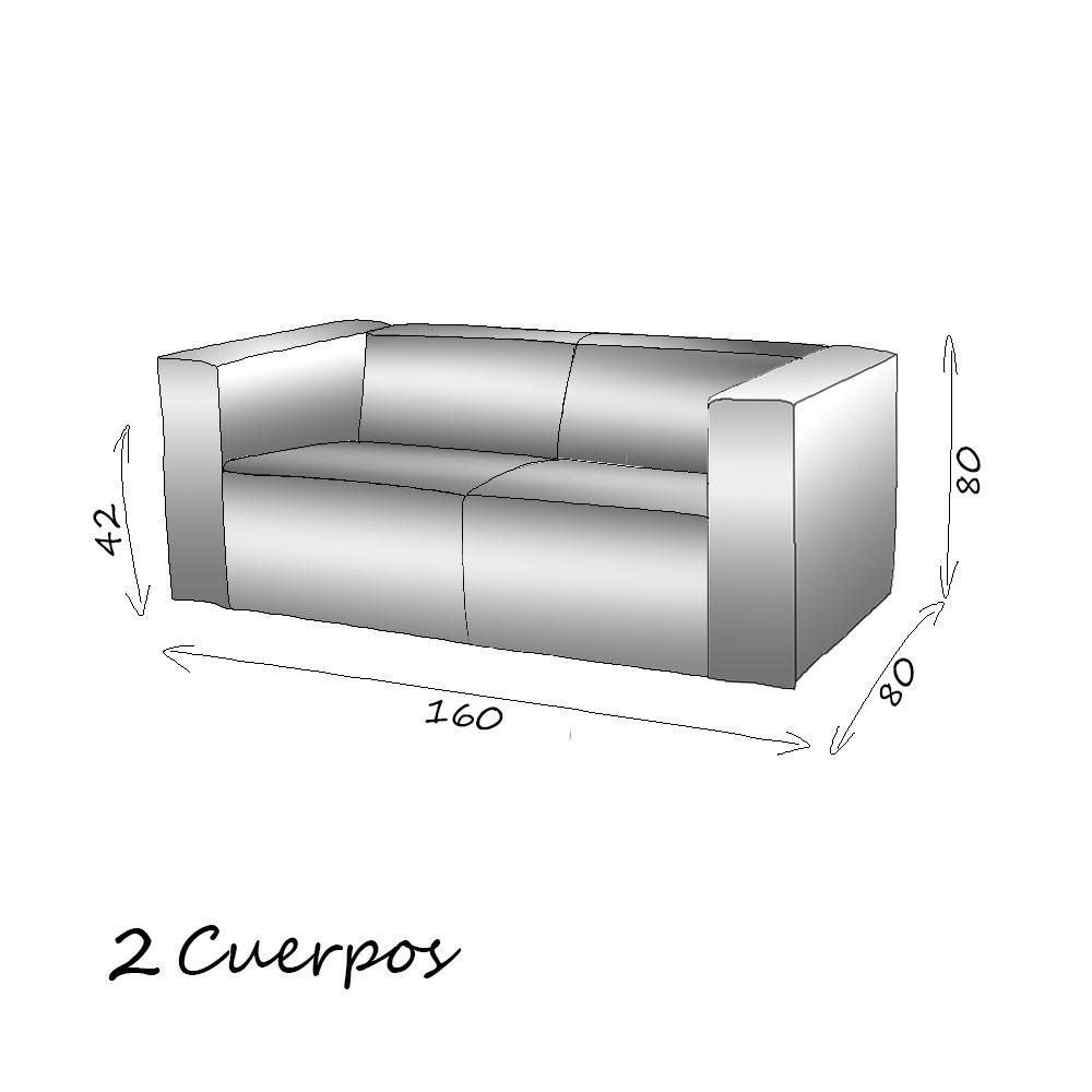 Sofá fabricado íntegramente en cuero, respaldo y asiento con cojines. Variedad de medidas y medidas especiales.